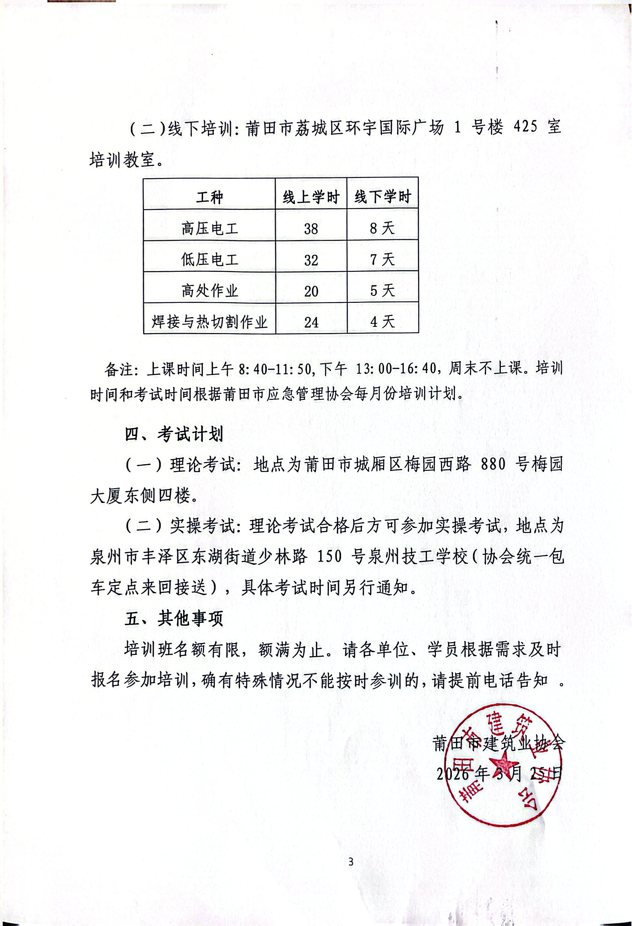 莆田市建筑业协会关于开展2026年福建省住房和城乡建设行业职业技能培训考核的通知
