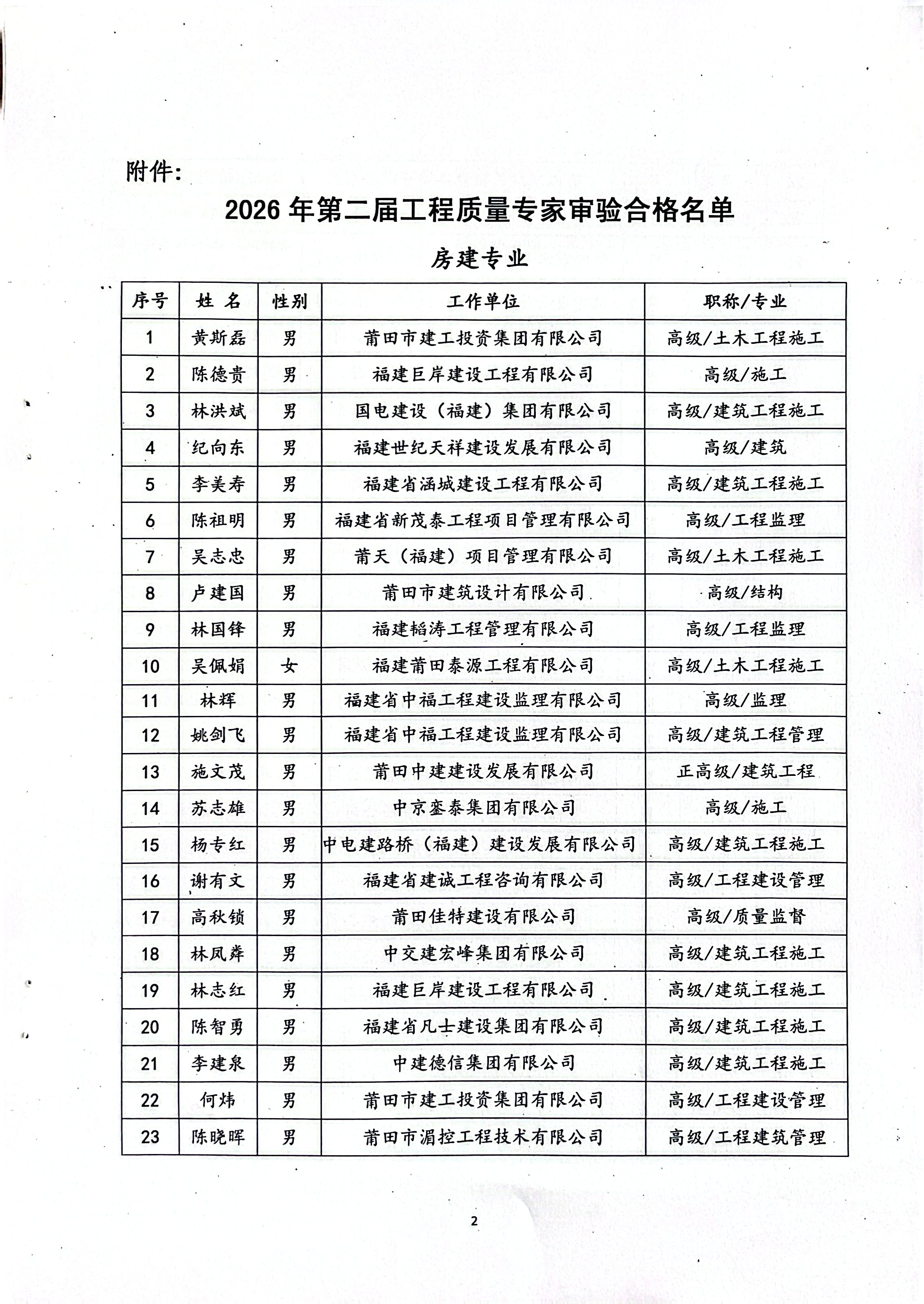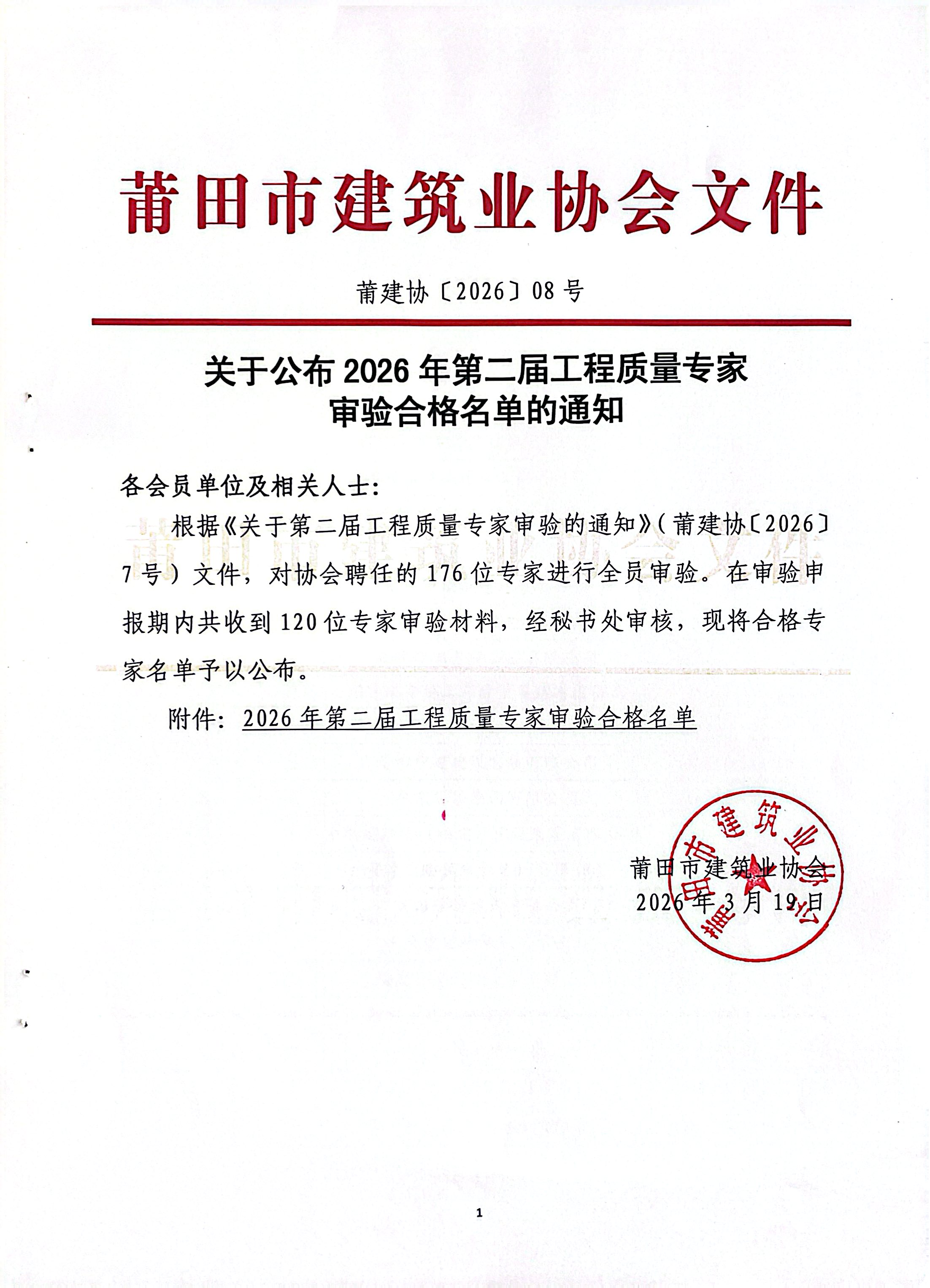 关于公布2026年第二届工程质量专家审验合格名单的通知